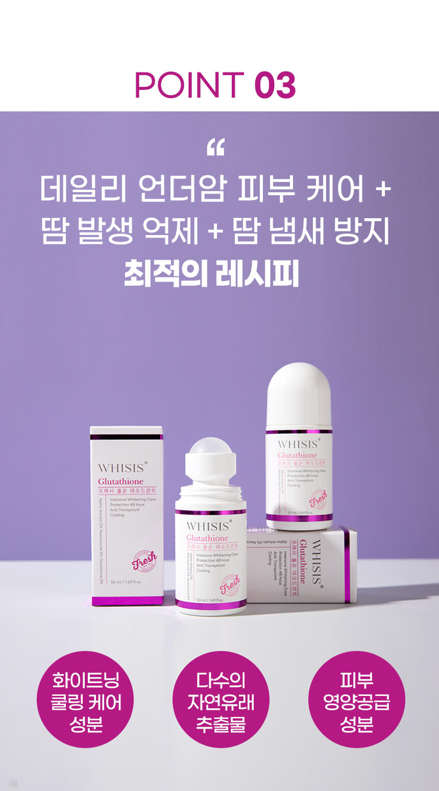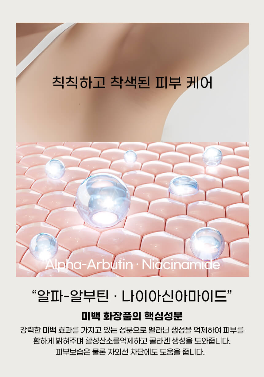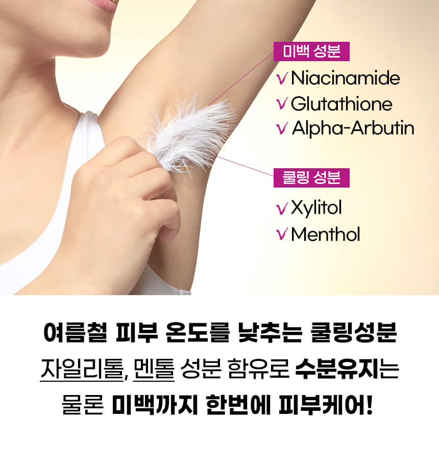 Công dụng: Khử mùi hiệu quả, ngăn chặn vi khuẩn gây mùi, mang lại cảm giác khô thoáng suốt ngày dài. Dưỡng sáng vùng da dưới cánh tay với những thành phần như Glutathione, Niacinamide, Alpha-Arbutin... giúp làm đều màu, cải thiện tình trạng thâm sạm, cho làn da sáng mịn.