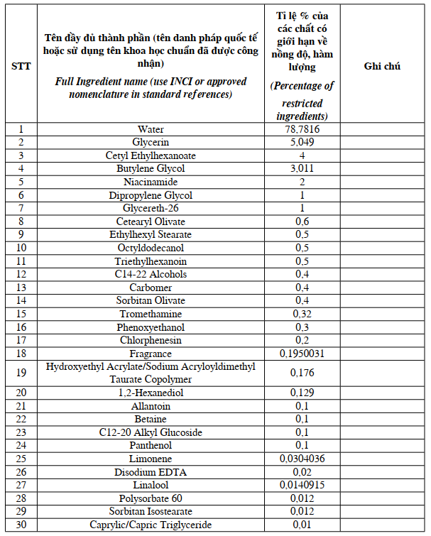 Thành phần sản phẩm: