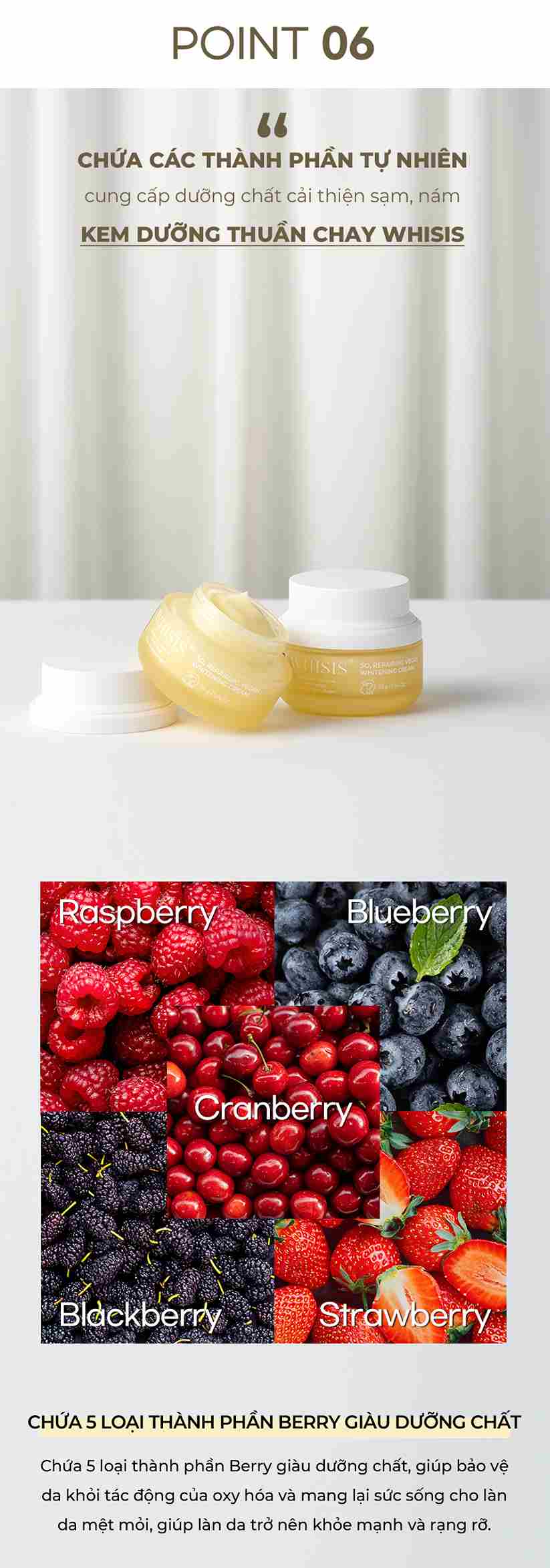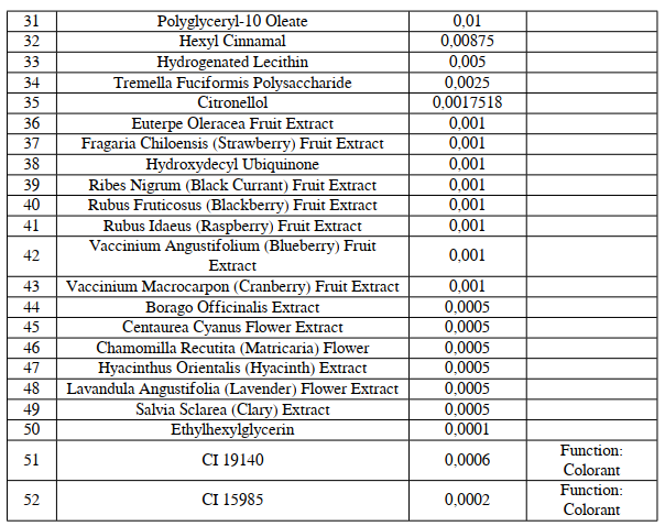 Sản phẩm được sản xuất bằng công nghệ Liposome. Có chứa idebenone và 50.000ppm collagen thực vật chiết xuất từ nấm tuyết. Chống lão hóa cải thiện các vết nám, đồi mồi .Giúp da trắng đều màu , mịn màng tự nhiên.
