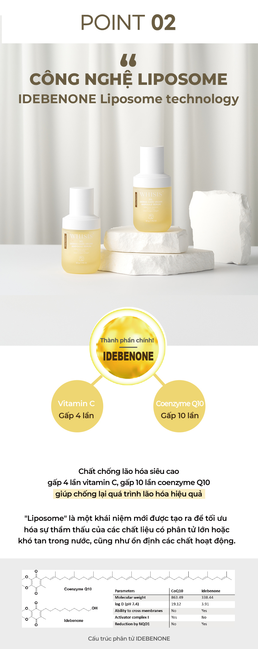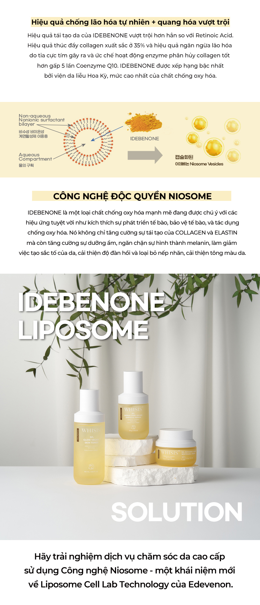 Chứa 50.000ppm collagen trong nấm tuyết, Thành phần IDEBENONE, Công nghệ LIPOSOME
