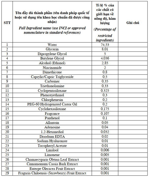 # Chứa Vitamin B3, Vitamin B5, Vitamin BE