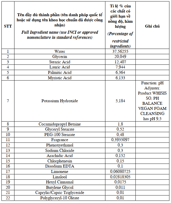 Thành phần sản phẩm: