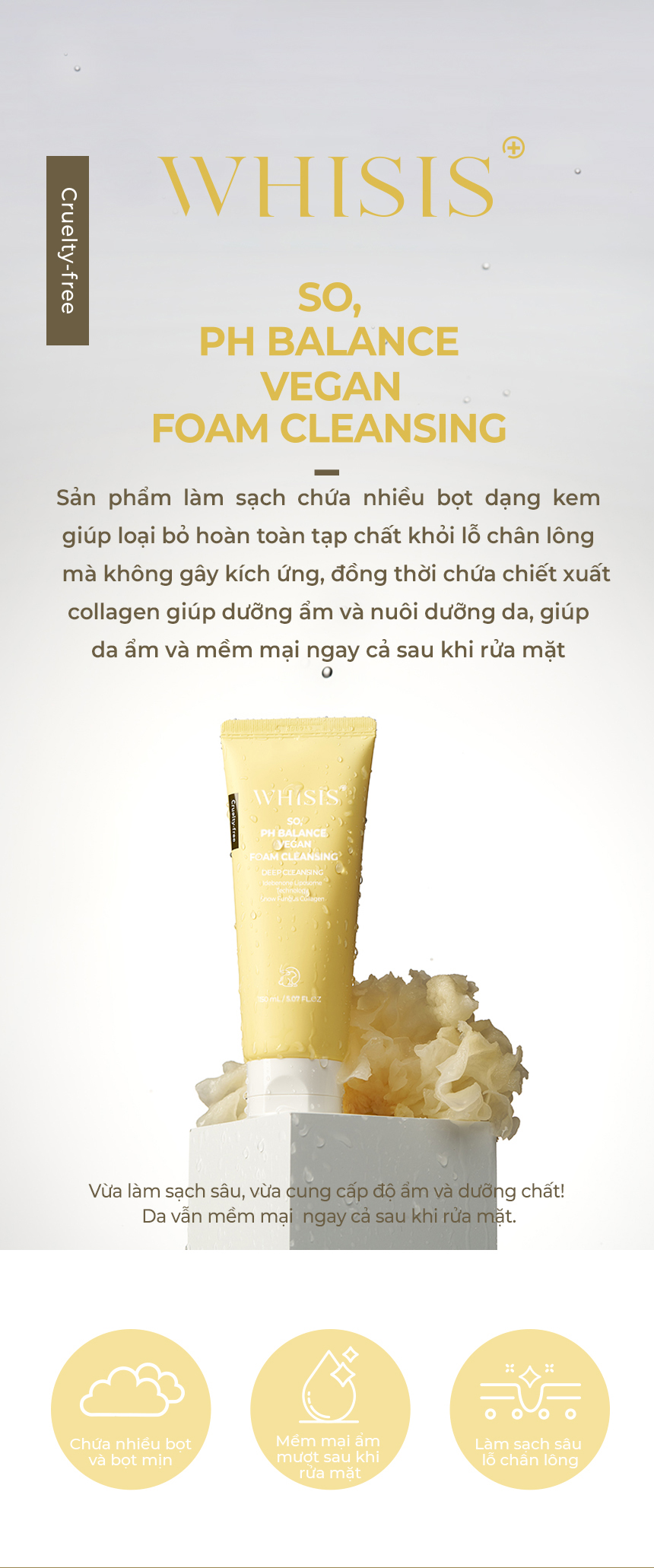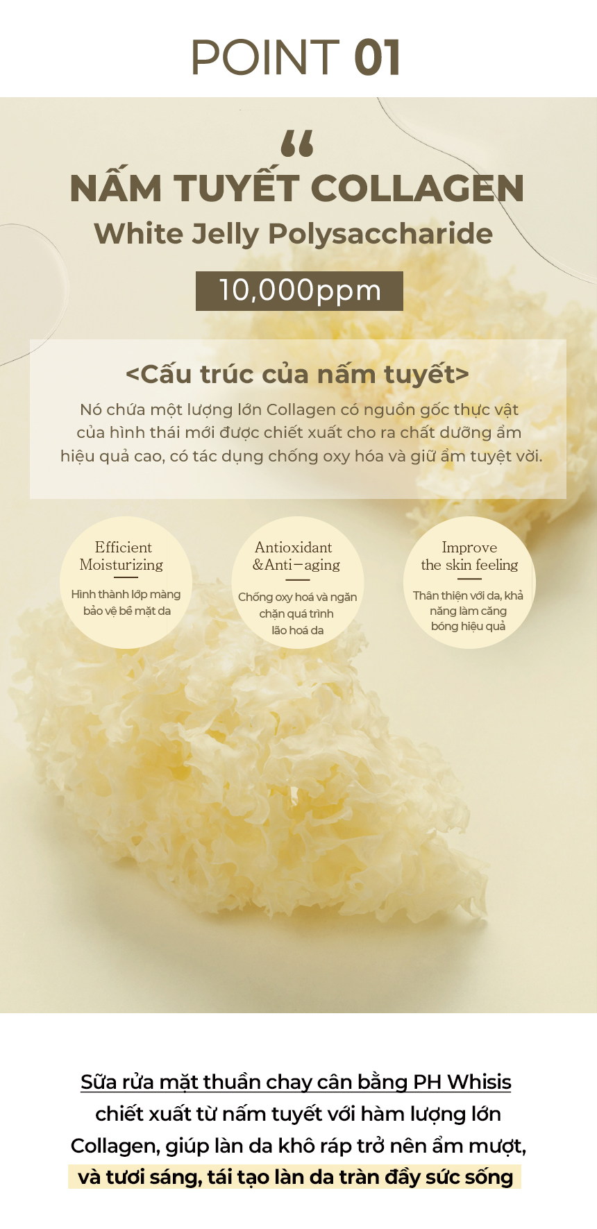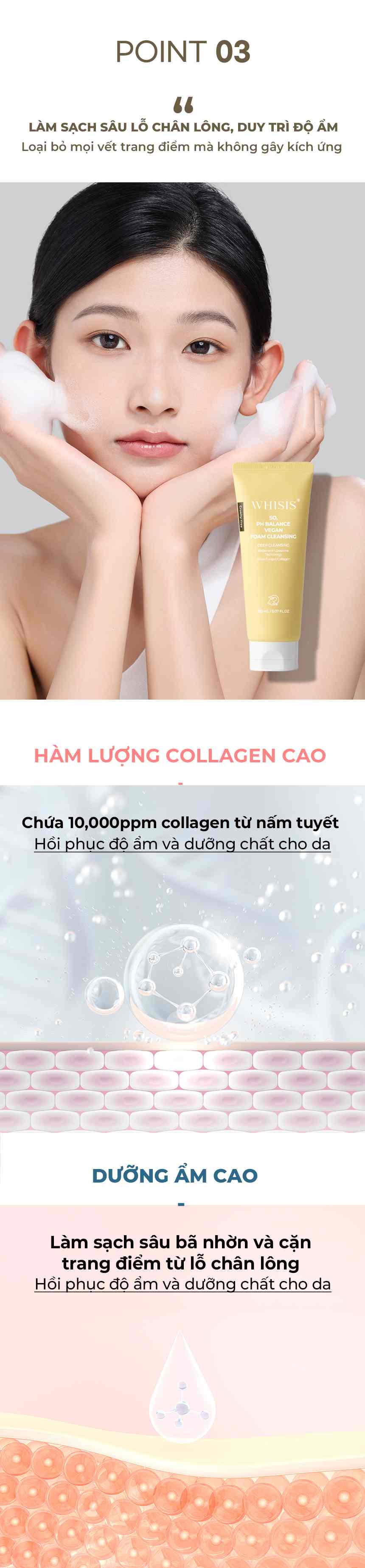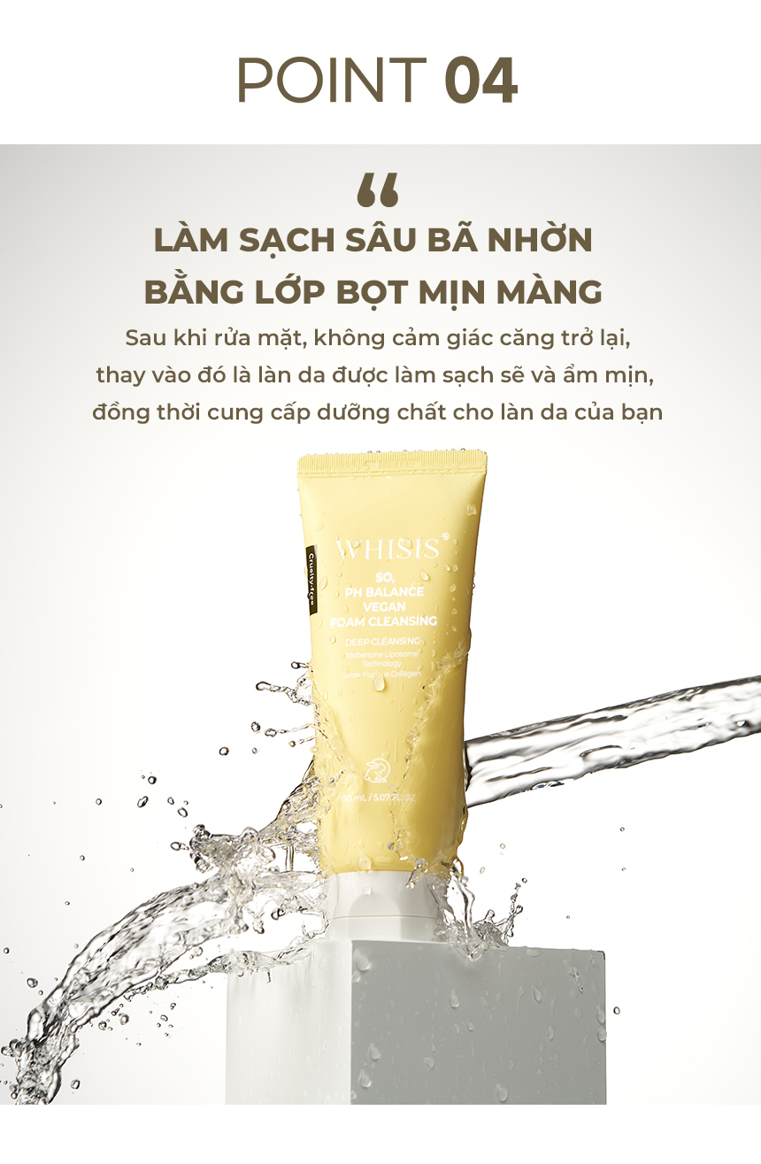 Sản phẩm làm sạch chứa nhiều bọt dạng kem giúp loại bỏ hoàn toàn tạp chất khỏi lỗ chân lông mà không gây kích ứng, đồng thời chứa chiết xuất collagen giúp dưỡng ẩm và nuôi dưỡng da, giúp da ẩm và mềm mại cho da ngay cả sau khi rửa mặt. (chứa Collagen nấm tuyết 10.000ppm)