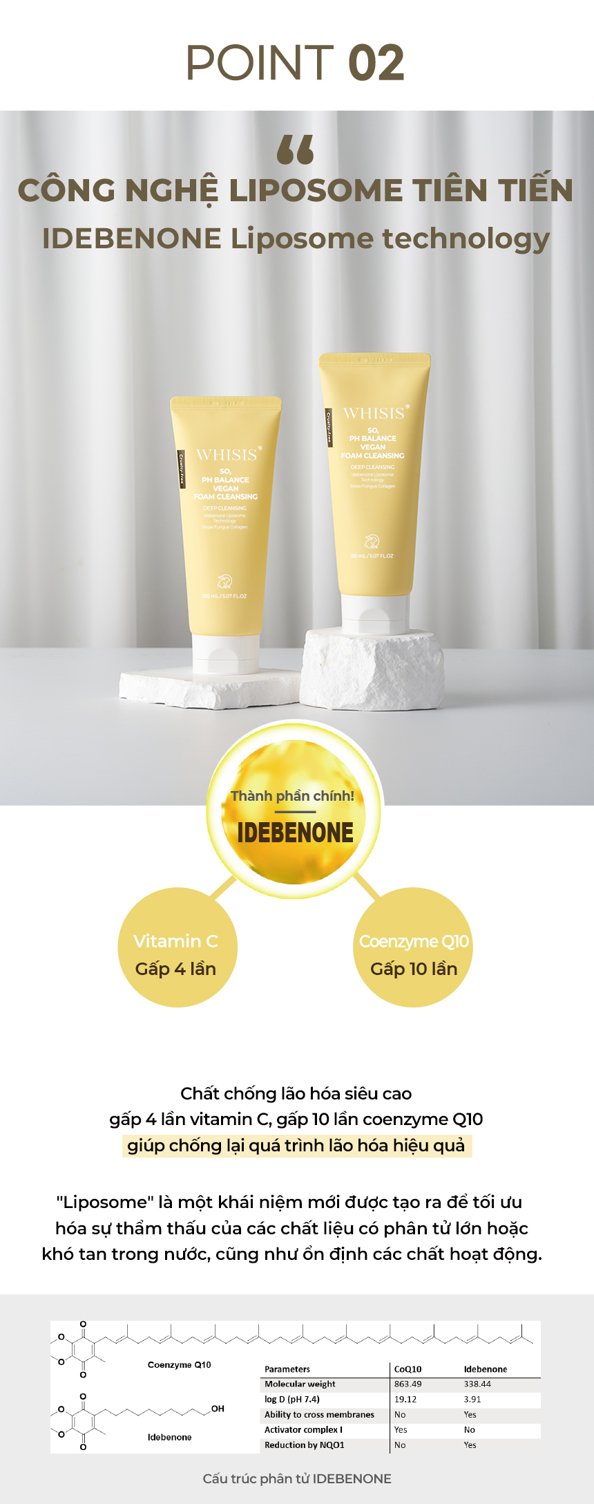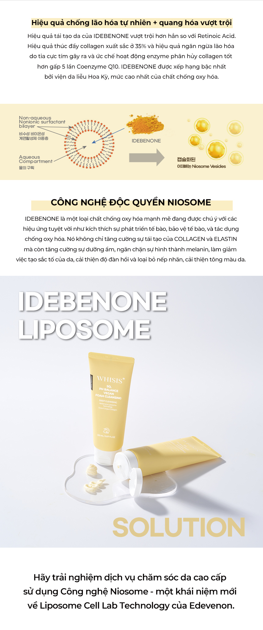 Chứa Collagen nấm tuyết 10.000ppm, Thành phần IDEBENONE, Công nghệ LIPOSOME