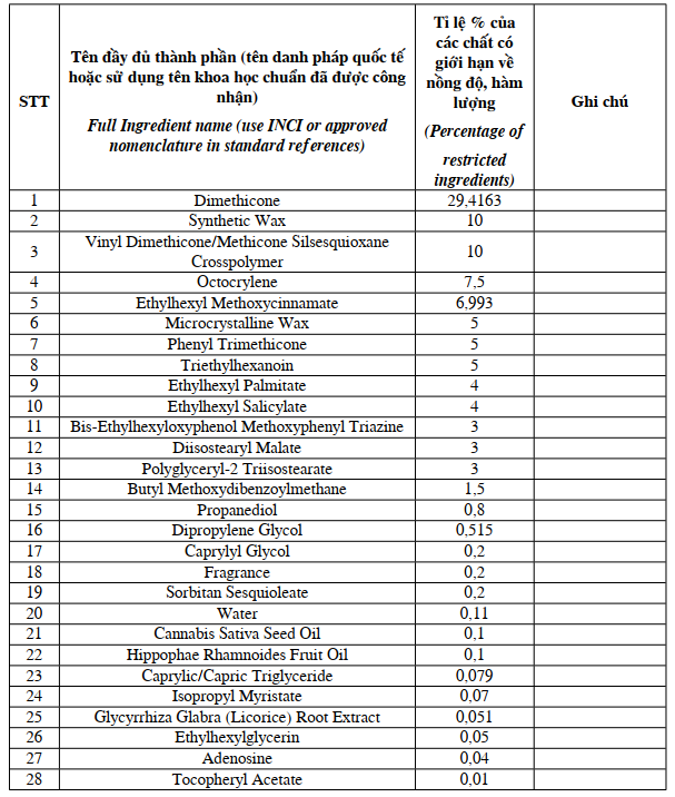Thành phần sản phẩm: