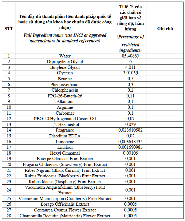 # Công thức độc quyền không gây nhờ rít, được hấp thụ sâu vào da để duy trì kết cấu da ẩm mượt và mịn màng.