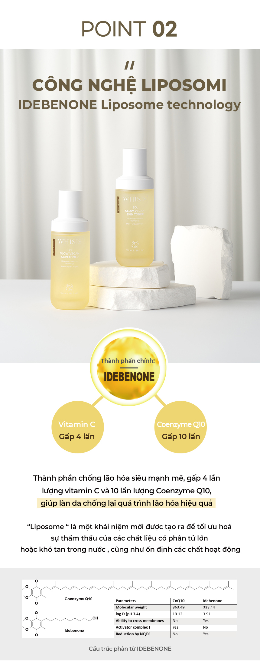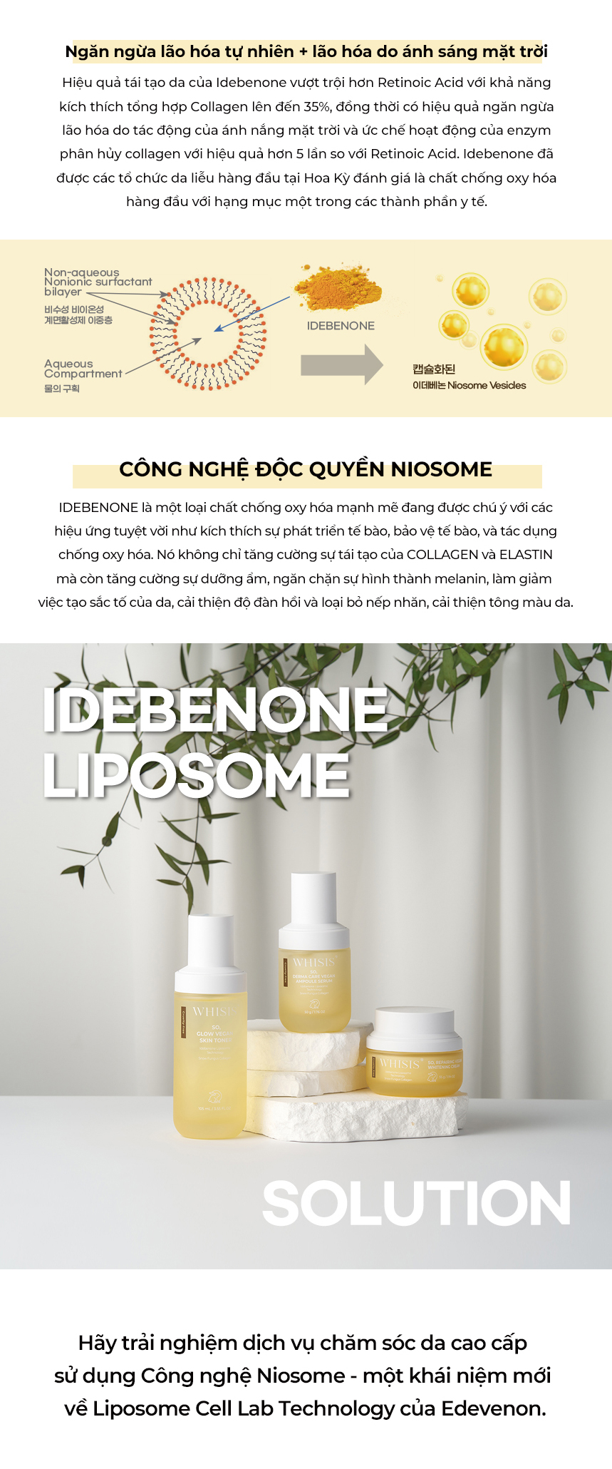 Chứa 10.000ppm collagen từ nấm tuyết, Thành phần IDEBENONE, Công nghệ LIPOSOME