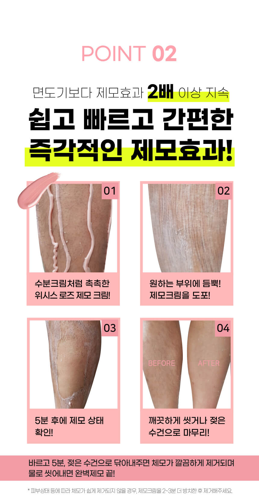 Đối với những vùng lông ngắn và cứng do đã từng cạo, nên sử dụng sản phẩm từ 1–2 lần (mỗi lần cách nhau vài ngày) để đạt hiệu quả làm sạch tối ưu.